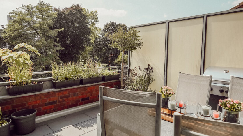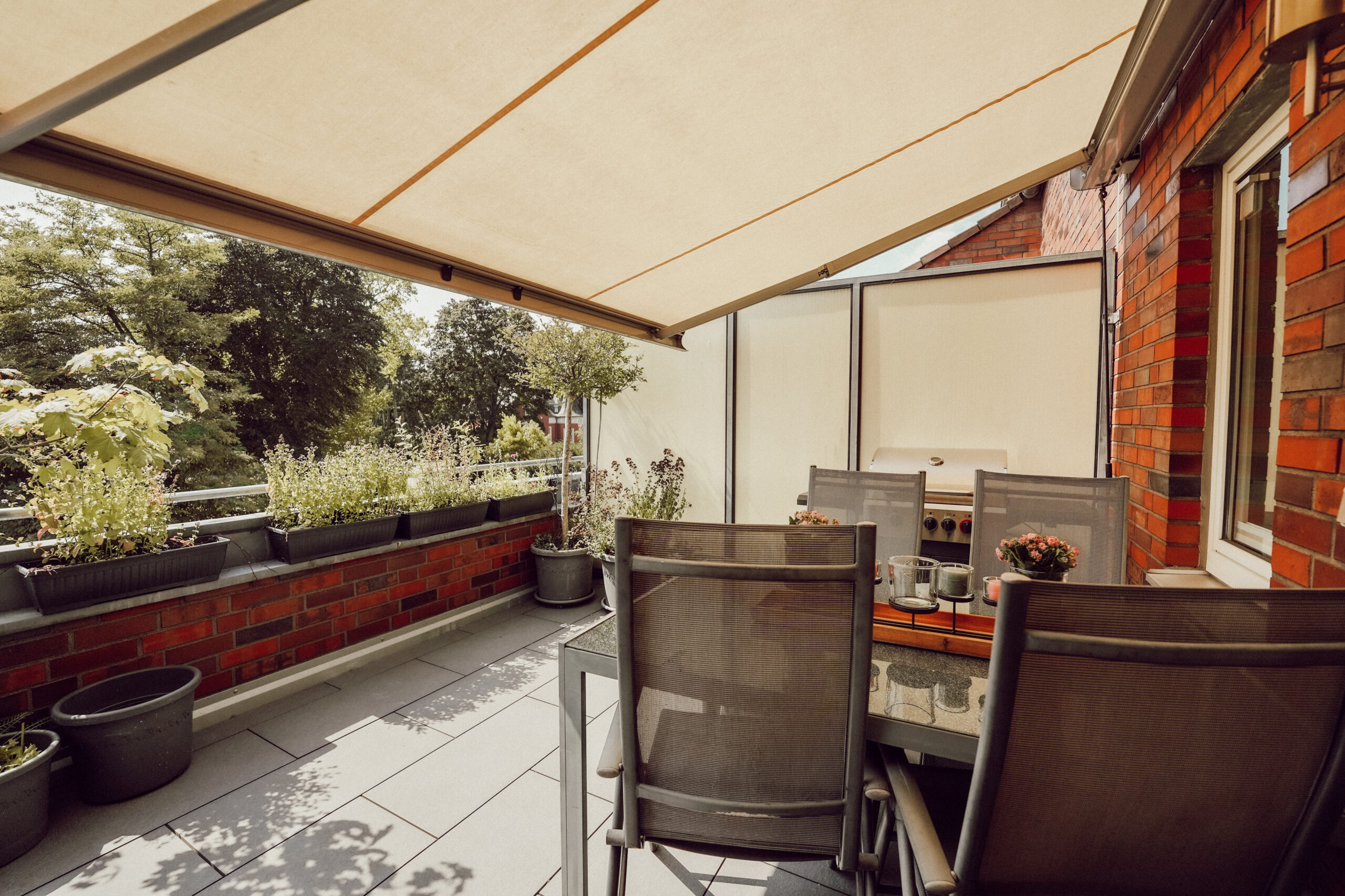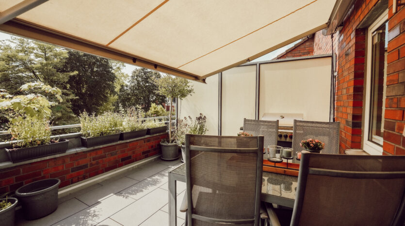 Großzügiger Balkon mit Markise – perfekt zum Entspannen