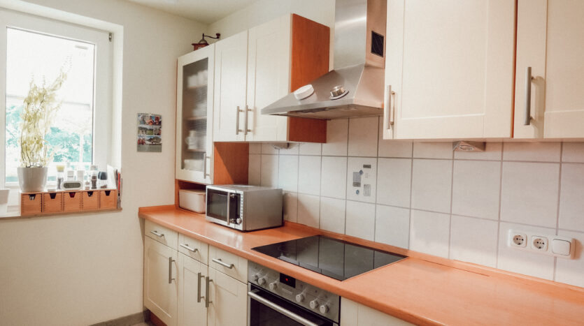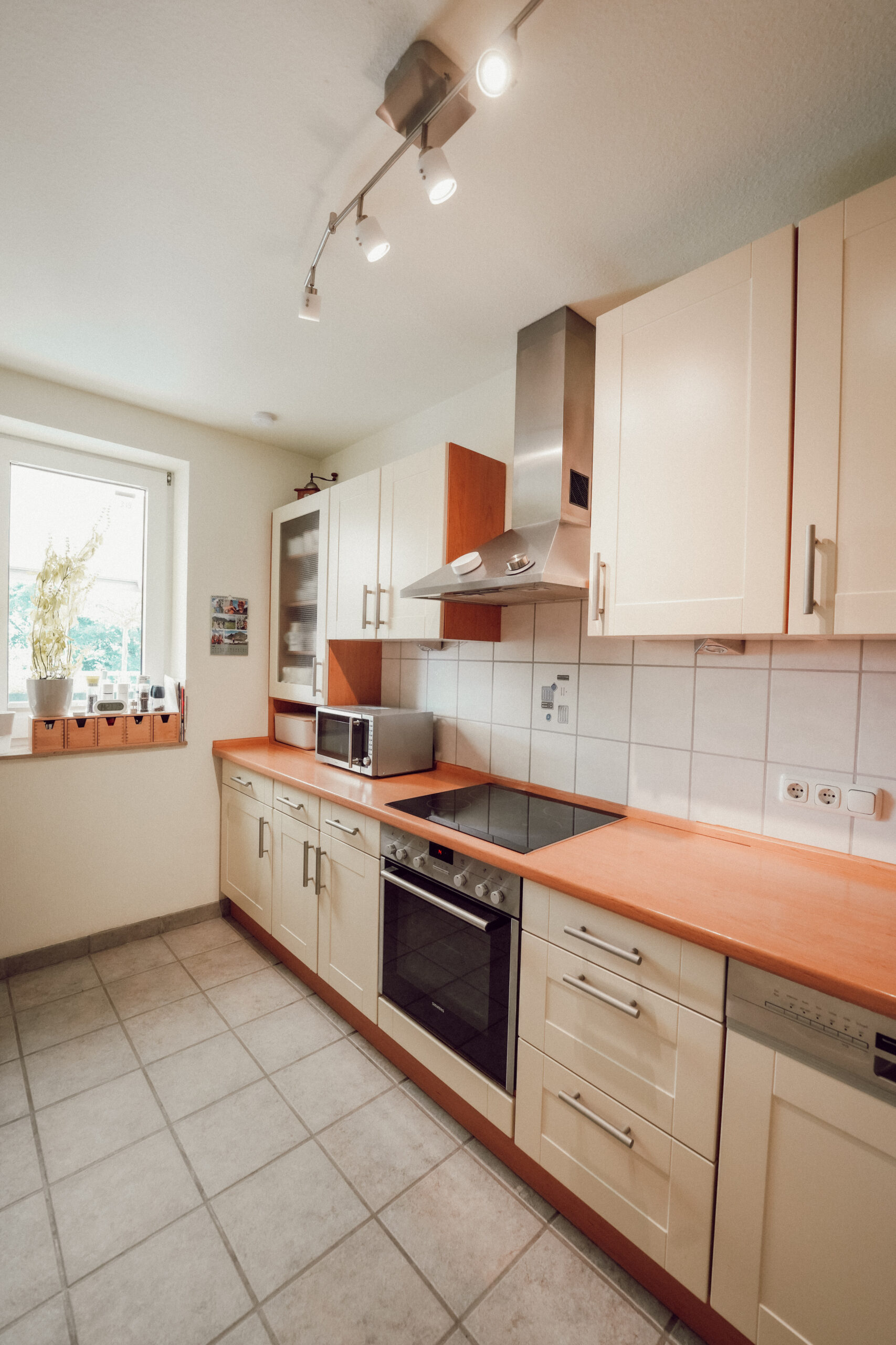 Küche mit Blick auf den Balkon, Einbauküche kann übernommen werden
