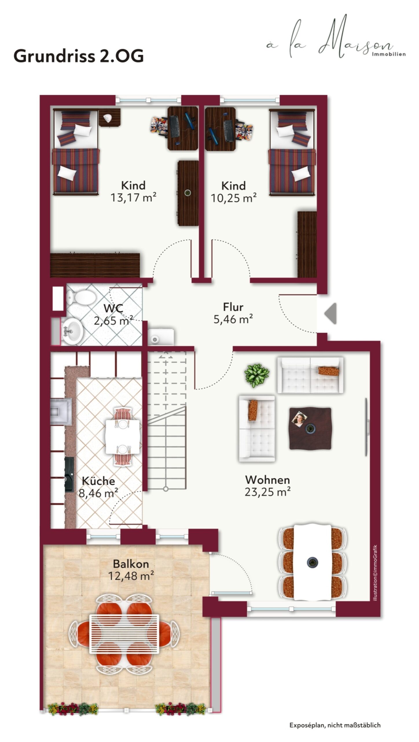 Diese helle und großzügig geschnittene Maisonettewohnung bietet mit ca. 98 m² Wohnfläche ein komfortables Zuhause für Paare oder Familien.